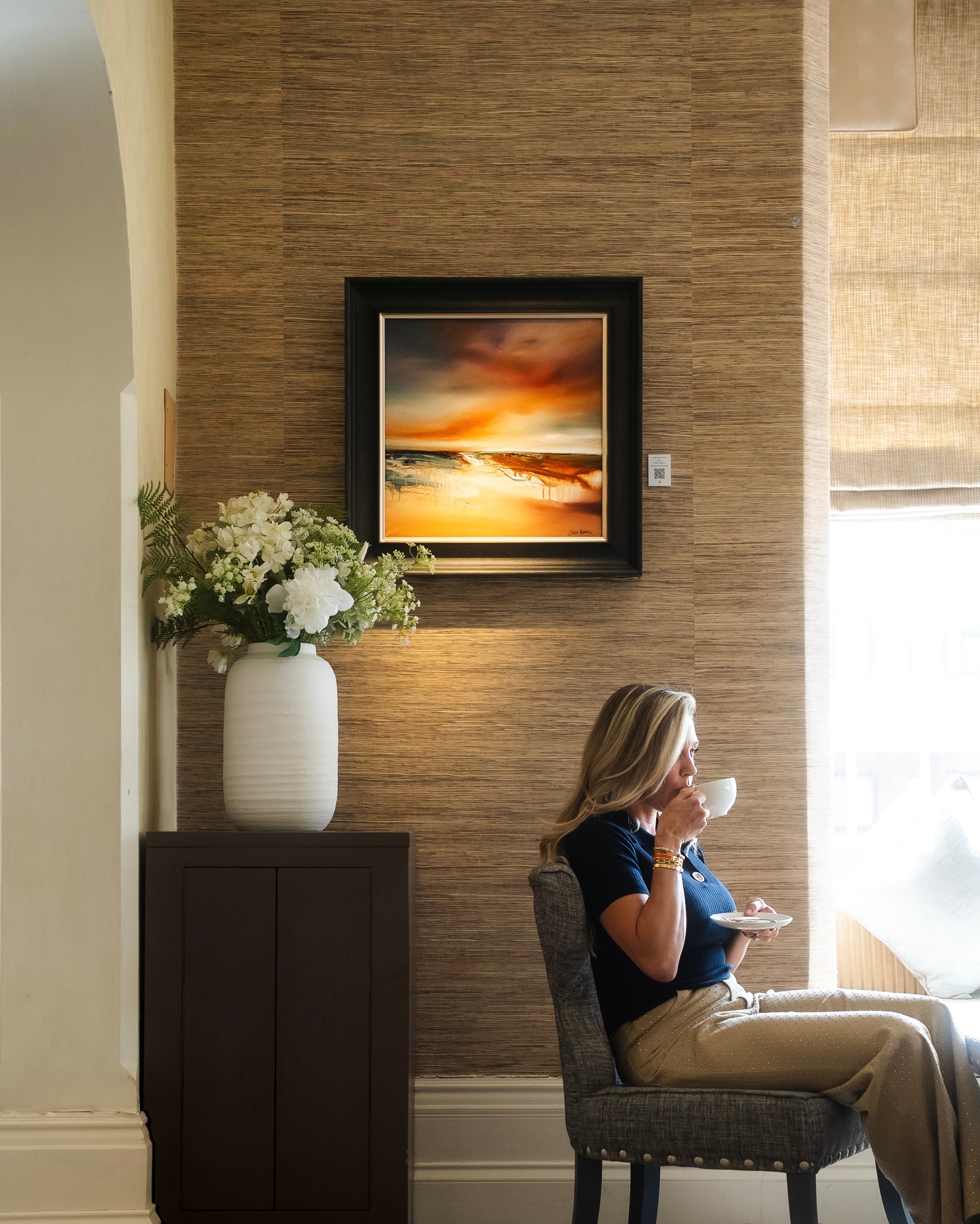 Warm and neutral hues painted in oil on canvas and set in a stunning bevelled frame.